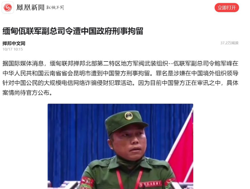 据国际媒体消息,缅甸联邦掸邦北部第二特区地方军阀武装组织--佤联军副总司令鲍军峰在中华人民共和国云南省省会昆明市遭到中国警方刑事拘留。